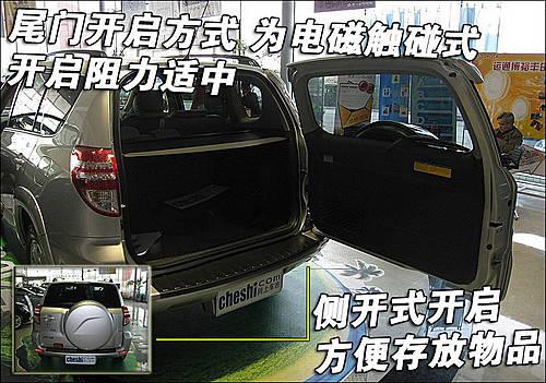 豐田國(guó)產(chǎn)RAV4尾門(mén)為電磁式側(cè)開(kāi)啟,在實(shí)際使用過(guò)程發(fā)現(xiàn)其開(kāi)啟力度適中。由于采用側(cè)門(mén)開(kāi)啟方式,所以十分方便乘客存放物品。