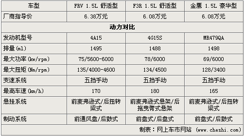 在動力方面,駿捷FRV采用的是綿晨動力4A15發(fā)動機,而F3R則采用是三菱4G15S,兩者在功率、扭矩數(shù)據(jù)上基本相當,而吉利自主的MR479QA從數(shù)據(jù)上看要弱一些,三者都為手動擋車型。在懸掛系統(tǒng)方面,駿捷FRV與金鷹采用的是前麥弗遜式、后扭轉(zhuǎn)梁式,造型簡單、成本也比較低。而F3R采用時前麥弗遜式懸架、后拖曳臂式懸架,乘坐的舒適性要好一些。