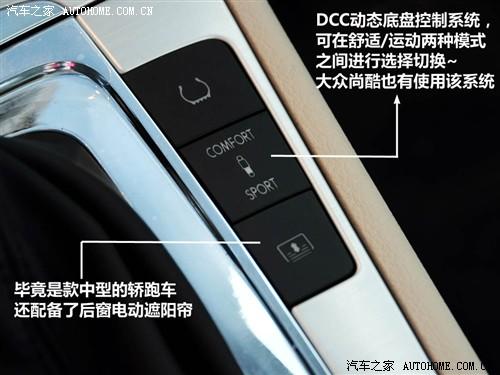 大眾CC搭配大眾的DSG變速箱,應(yīng)該也是跟邁騰一樣的DQ250。排擋樣式跟其他大眾車型都一樣,在擋把上有DSG的字樣。跟尚酷一樣配備了大眾的新技術(shù)DCC動(dòng)態(tài)底盤控制系統(tǒng),可以在舒適和運(yùn)動(dòng)兩種模式中選擇切換。但遺憾的是踏板都是非常普通的樣式,未免太過于低調(diào)了。畢竟也是一款轎跑車,適當(dāng)在細(xì)節(jié)上增強(qiáng)些視覺效果會(huì)更受歡迎。不過,那好像也不是大眾的風(fēng)格。