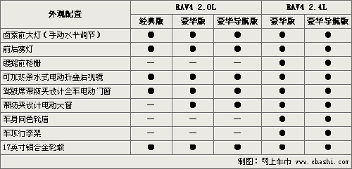 2009年4月10日,以先行進(jìn)口引入中國(guó)最終在國(guó)內(nèi)實(shí)現(xiàn)本地化生產(chǎn)的豐田RAV4,正式登陸中國(guó)汽車市場(chǎng)上市銷售。準(zhǔn)備購(gòu)買這一車型的消費(fèi)者,在面對(duì)著這一擁有2.0L與2.4L兩種排量共計(jì)10款車型,售價(jià)從18.98萬(wàn)元至26.43萬(wàn)元的國(guó)產(chǎn)RAV4,難免會(huì)看得眼花繚亂不知從何下手“十選一”挑出一臺(tái)適合自己的新車。通過對(duì)以下國(guó)產(chǎn)RAV4十款車型配置差異的解析,或許您會(huì)找到答案。