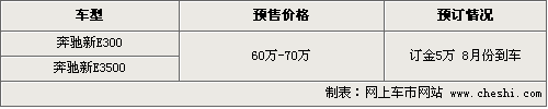 據(jù)4S店銷售人員介紹,目前奔馳老款E級各4S店已經(jīng)停產(chǎn),不再接受消費(fèi)者預(yù)訂,而新款E級可以接受預(yù)訂,訂金為5萬元,銷售人員介紹預(yù)計8月份可以到車。首批到車的是進(jìn)口的新E300和E350,預(yù)售價格在60萬元-70萬元之間。同時銷售介紹6月份北京地區(qū)將有新E級的巡展活動舉辦,關(guān)注這款車的消費(fèi)者可以留意4S店的相關(guān)信息。