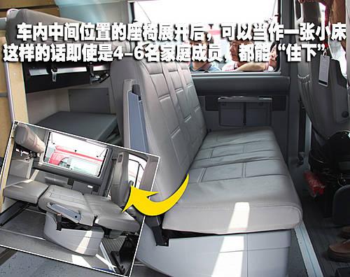 當(dāng)然,為了滿足全家人出游都能夠獲得舒適的休息環(huán)境,在車(chē)內(nèi)的后排座椅還可以放倒并形成一張小一號(hào)的雙人床。而在這張床下則是一個(gè)隱藏的儲(chǔ)物空間,各個(gè)部分的設(shè)計(jì)非常的人性化。