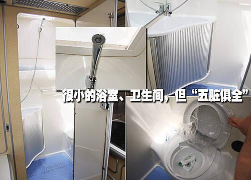 麻雀雖小但五臟俱全,房車(chē)雖然比不上房子但是勝似一個(gè)溫馨的家。在房車(chē)的后部,獨(dú)立設(shè)計(jì)的衛(wèi)生間以及浴室真的是太周到了,這里的每一件衛(wèi)具都是為了房車(chē)緊湊的空間而特殊設(shè)計(jì)的。
