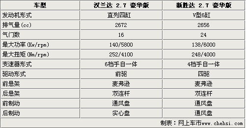 國產(chǎn)漢蘭達(dá)和新勝達(dá)的排量均為2.7這個(gè)區(qū)間,但是在發(fā)動(dòng)機(jī)形式和技術(shù)上卻存在著本質(zhì)區(qū)別。漢蘭達(dá)的引擎為直列四缸,該發(fā)動(dòng)機(jī)配備了雙VVT-i技術(shù),實(shí)現(xiàn)了卓越的動(dòng)力輸出,同時(shí)進(jìn)一步提高了燃油經(jīng)濟(jì)性。新勝達(dá)則配備的是動(dòng)力輸出更加平穩(wěn)的V型6缸發(fā)動(dòng)機(jī)。兩款車型在動(dòng)力輸出上,漢蘭達(dá)占據(jù)了明顯優(yōu)勢,這一點(diǎn)從動(dòng)力輸出上就可以明顯看出。比較遺憾的是漢蘭達(dá)2.7排量的車型都是前驅(qū),新勝達(dá)則是全時(shí)四驅(qū)。在變速器方面漢蘭達(dá)都配備的6檔手自一體變速器,新途勝則是4速手自一體變速箱。制動(dòng)方面兩款車型都是采用的前通風(fēng)盤后實(shí)心盤式的剎車。