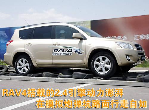 RAV4城市休閑SUV 2.4排量車型,其最大功率和最大扭矩分別為125Km何224Nm,與之匹配的5速手動(dòng)和4速自動(dòng)變速器。澎湃的動(dòng)力性能,讓RAV4城市休閑SUV在模擬炮彈坑路面行駛時(shí)行走自如。