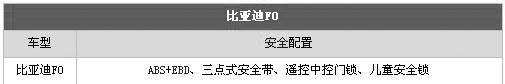 比亞迪F0是微型車的后起之秀,安全配置也是不錯的。F0高配的兩款車型配置更齊全,單安全氣囊甚至擁有雙安全氣囊,ABS+EBD也有裝備。發(fā)動機(jī)防盜、中控鎖、遙控鑰匙,電動車窗,CD這些裝備也一應(yīng)俱全,并不輸給任何對手。車內(nèi)空間設(shè)計實用,儲物盒就達(dá)8個之多,相當(dāng)方便。