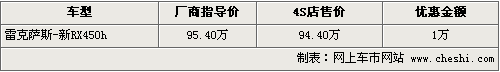 據(jù)雷克薩斯4S店銷售人員表示,剛剛上市的RX450h的貨源相對比較緊張,所以優(yōu)惠幅度也是最少的,只有1萬元。個別款色需要消費者提前預(yù)訂才行。