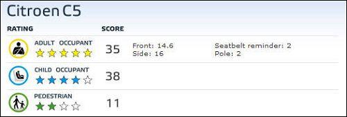總體看來,C5對成年人保護出色獲得5星評價,對兒童保護也比較優(yōu)秀獲得4星評價,對于行人保護相對較差,僅獲得2星。