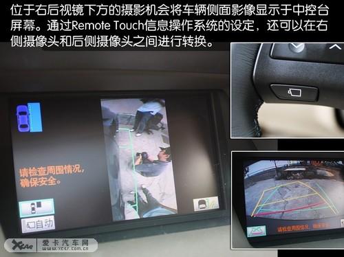 造型典雅的三輻式真皮方向盤功能不少,不僅能夠控制常規(guī)的音響和行車數(shù)據(jù)的選擇,按下左下方的車側(cè)攝影輔助系統(tǒng)開啟按鈕,位于右后視鏡下方的攝影機(jī)會將車輛右側(cè)影像顯示于中控臺屏幕,并提供廣角與輔助線功能。通過Remote Touch信息操作系統(tǒng)的設(shè)定,還可以在右側(cè)攝像頭和后側(cè)攝像頭之間進(jìn)行轉(zhuǎn)換。