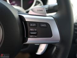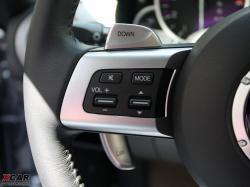 三輻真皮方向盤融合了7個(gè)多功能控制按鈕,方便Driver對(duì)不同功能進(jìn)行調(diào)節(jié)。當(dāng)然,撥片換擋這一運(yùn)動(dòng)車的標(biāo)志性配置同樣出現(xiàn)在方向盤后面,左右兩側(cè)各一組,兩手同為“按減撥增”的設(shè)計(jì)方便適應(yīng)不同的駕駛習(xí)慣。