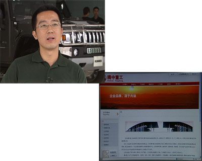 記者:“我的身后就是此次收購(gòu)美國(guó)通用悍馬汽車的四川騰中重工機(jī)械有限公司,這家公司位于成都市新津工業(yè)園區(qū),這家企業(yè)在當(dāng)?shù)厥窍喈?dāng)?shù)牡驼{(diào),我們來到這里的時(shí)候發(fā)現(xiàn),這里的廠門上沒有任何關(guān)于廠名的字跡,只有后面的那個(gè)標(biāo)志告訴我們這里是騰中重工的所在地。據(jù)我們了解,這家企業(yè)主要生產(chǎn)橋梁機(jī)械和一些機(jī)械設(shè)備,并沒有生產(chǎn)整車的經(jīng)驗(yàn),那這樣的一家企業(yè)憑什么收購(gòu)?fù)ㄓ煤否R呢?”