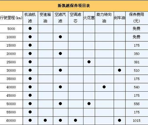 悅動(dòng)的首保為5000km,以后每次的保養(yǎng)間隔為5000km。保修政策為2年/6萬公里保修(以先到為準(zhǔn))。第二次的10000km保養(yǎng)和首保內(nèi)容相同。那么如果一年行駛2萬km,悅動(dòng)一年要做四次保養(yǎng)。由下表可知其除了第一年,以后每年的保養(yǎng)費(fèi)用1500元。
