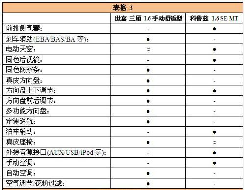 由于三廂世嘉和科魯茲的低端車型均搭載1.6L發(fā)動(dòng)機(jī),因此比較起來(lái)更加公平,而為了避免自動(dòng)變速箱產(chǎn)生的成本差異,我們均以手動(dòng)擋車型作為比較車型。