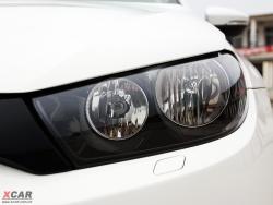 造型犀利的黑底大燈與中網(wǎng)配合的天衣無縫,打造出尚酷特有的前臉造型,既兇狠又有沖勁。遠遠望去,仿佛一只匍匐著的貓科猛獸,瞇著雙眼等待著獵物的到來,它不需要有血盆大口,僅憑眼神便可令對手毛骨悚然。只是這對眼神雖然夠犀利,但視力不太好,此次試駕車并沒有裝備氙氣大燈。雖然尚酷2.0TSI的售價還未公布,但參考5代GTI的價格來看,我們還是希望這款接近40萬元售價的跑車可以將配置提高一些。