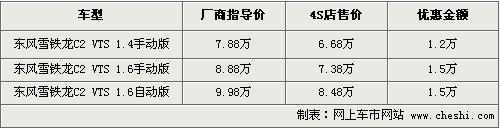 C2作為東風(fēng)雪鐵龍旗下的主力A級(jí)兩廂車(chē)型,憑借時(shí)尚的外觀和出色的動(dòng)力性能贏得了廣大消費(fèi)者的認(rèn)可。但隨著眾多競(jìng)爭(zhēng)車(chē)型的上市銷(xiāo)售,C2的銷(xiāo)量也沒(méi)有得到明顯的改善,進(jìn)而在價(jià)格方面的優(yōu)惠有了一定幅度的放松。目前C2全系車(chē)型最高可優(yōu)惠1.5萬(wàn)元,具體行情如下: