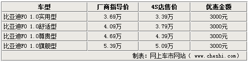據(jù)銷售人員介紹,現(xiàn)在比亞迪F0愛國版igo系列車型的現(xiàn)車比較齊全,只有旗艦型沒有現(xiàn)車,但消費(fèi)者可以預(yù)訂。售價(jià)3.99萬元的老款舒適型現(xiàn)在已經(jīng)停產(chǎn),而老款豪華型目前還有部分現(xiàn)車銷售。另外,比亞迪F0老款豪華型和尊貴型等全系目前都可以優(yōu)惠現(xiàn)金3000元。