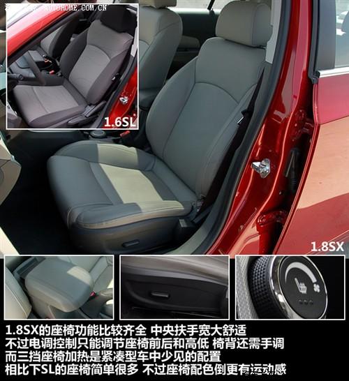 兩款車型的座椅造型基本相同,不過配色上1.6 SL的深淺搭配似乎更能迎合年輕消費(fèi)者的口味,但如果論功能性,1.8 SX的座椅占有絕對(duì)優(yōu)勢(shì),尤其是其裝備的座椅加熱系統(tǒng),共有三檔功率可選,這是大部分緊湊型車都沒有裝備的實(shí)用配置。