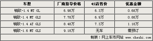 據(jù)4S店銷售人員介紹,目前銳歐全系優(yōu)惠幅度并不大,現(xiàn)售主要是1.4L排量車型,由于賽拉圖兩廂和三廂完全能夠滿足消費(fèi)者的購(gòu)車需要,所以幾乎沒(méi)有消費(fèi)者選購(gòu)1.6L排量的銳歐。1.4L三款車優(yōu)惠價(jià)格從0.68萬(wàn)元到1.18萬(wàn)元不等,同時(shí)店內(nèi)有銀色、紅色等現(xiàn)車可供選購(gòu),現(xiàn)車顏色較為齊全,消費(fèi)者選擇的空間比較大。