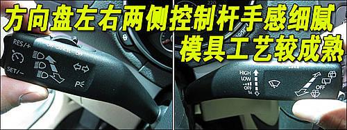 方向盤后方兩側(cè)的控制桿采用塑料材質(zhì),但是絲毫沒有手感欠佳的廉價感,模具也是相當(dāng)考究,使用起來定位精準(zhǔn),手感厚實。