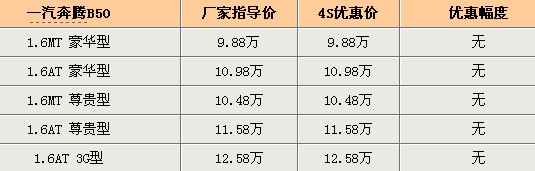 品牌看點:對于一款馬自達和德國大眾技術融合的車型,B50與B70的開發(fā)模式一樣,首先在產(chǎn)品的核心技術上先安下“放心丸”,而且9.88萬元-12.58萬元定價可以說是覆蓋了市場上主流1.6L中級車的價格范圍,奠定了產(chǎn)品的競爭力基礎。可以說B50的上市解決了奔騰品牌僅一款B70車型獨打的局面,目前,奔騰B70月銷5000輛成績幾乎于老馬自達6不分上下。B50的上市后對B70在1.6L市場的缺失將帶來彌補作用。