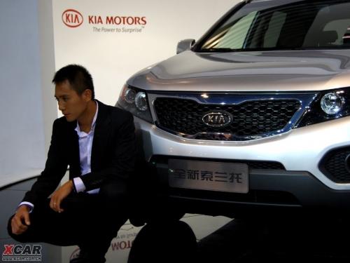 在起亞新索蘭托的上市發(fā)布會上,劉燁一身正裝打扮十分帥氣。配合著青春靚麗的車模和動感時尚的新索蘭托,劉燁把眾人的目光都吸引到了起亞的展臺。