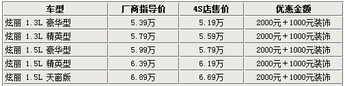作為長城汽車的第二款轎車產品,炫麗車型已經在市場中銷售了一段時間,在市場中較為平淡的銷售表現(xiàn)自然不會讓人滿意。網站了解到,近期各家經銷商店內的全系長城炫麗車型均在價格上出現(xiàn)松動,不僅在現(xiàn)金方面可以優(yōu)惠2000元,店內還加送價值千元的內外裝飾。詳情如下: