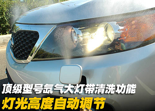 HID氙氣前大燈與極具起亞家族特色的“老虎嘴”狀散熱格柵直接相連,燈內(nèi)采用黑底設(shè)計(jì)加上雙圓燈組的布局,讓全新索蘭托在SUV的剛毅粗獷中又添加了幾分銳利的鋒芒。同時(shí)帶有大燈清洗和自動(dòng)調(diào)節(jié)功能。