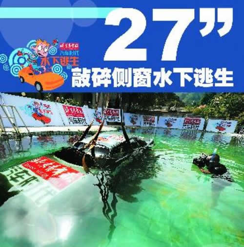 由《北京青年報(bào)》舉辦的"車輛落水逃生試驗(yàn)"上周在懷柔雁棲景區(qū)的巴克公社進(jìn)行。試驗(yàn)分三段進(jìn)行,在車輛落水后,分別驗(yàn)證了推開車門逃生、砸破側(cè)窗逃生和砸碎前風(fēng)擋逃生。試驗(yàn)結(jié)果顯示,車輛落水后保持鎮(zhèn)定、積極措施自救,是成功逃生的保證。推開車門逃生是最直接、快速的自救方法。