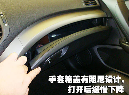 思鉑睿的手套箱為有阻尼設(shè)計(jì),在打開手套箱后不會因重力而自由下落,手套箱內(nèi)部空間較大,分層設(shè)計(jì)可以方便乘客查找物品。