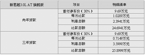 貸款詳解:新君越新上市不久,目前仍需要加價提車,現(xiàn)在實(shí)行的分期付款購車,分為兩年及三年付款兩類,買車的朋友可以根據(jù)自己的實(shí)際能力選擇貸款項(xiàng)目。首付款為凈車價的三成,也就是在9.69萬,當(dāng)然編者所列的車型是新君越的最高配,按照比例來計算的話其它版本的車型首付款要低于9.69萬。