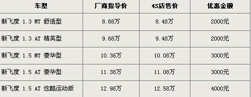 據(jù)廣州本田北京地區(qū)4S店銷售人員介紹,新飛度在售車型分為1.3L及1.5L共5個車型在售,最低售價8.48萬元,全系車型優(yōu)惠金額2千-4千不等。目前新飛度銷售火爆,部分車型及顏色需要預(yù)定。北京地區(qū)各4S店由于訂單不同,各店銷售的現(xiàn)車顏色有所不同。