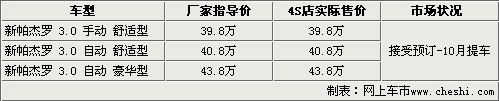 據(jù)三菱汽車4S店銷售人員介紹,帕杰羅3.0L目前已經(jīng)在國內(nèi)正式上市,售價39.8萬元起。目前這款新車在店里還沒有現(xiàn)車,展車預計會在月底左右抵達展廳,而第一批現(xiàn)車主要以自動豪華型和自動精英型為主,預計在10月上旬到店。如果現(xiàn)在預訂新帕杰羅3.0L最快則要等到十月中下旬才能夠提車。目前購買新一代帕杰羅3.0L還沒有任何優(yōu)惠政策,相信等新車批量到店的時候,價格可能會與少許松動。