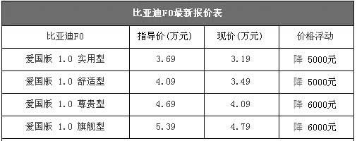 比亞迪F0最低僅售3.19萬元