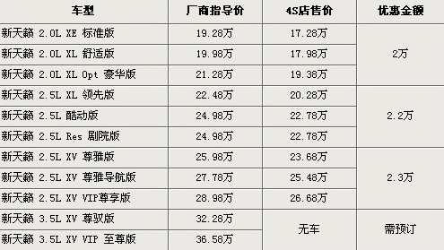 新天籟全系最高降2.3萬元 最低不足18萬