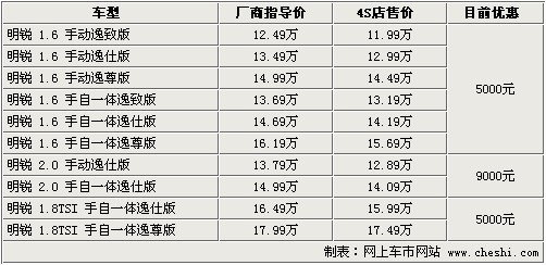 明銳-優(yōu)惠9000元 1.6L車型優(yōu)惠幅度減小