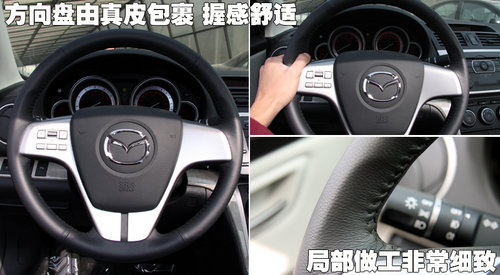 睿翼采用了真皮材質(zhì)的方向盤,手握感覺很好,2.0L車型內(nèi)飾較2.5L車型少了許多配置,只有音響控制被集成到方向盤上,駕駛時(shí)調(diào)節(jié)CD更加方便,按鍵周圍的做工非常細(xì)致。