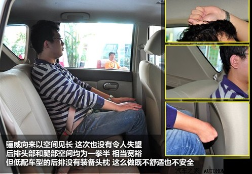 和其它小型車相比,驪威多少顯得有些另類。達到緊湊級別的2600mm軸距使它成為了這個級別的軸距王,內(nèi)部空間無疑是驪威最大的優(yōu)勢所在,但造就這樣空間表現(xiàn)的外形設(shè)計卻不是每個人都能接受的。此外我們發(fā)現(xiàn)驪威最低配全能型的后排座椅沒有裝備頭枕,這對舒適性和安全性都有較大影響,因此并不建議購買最低配車型。