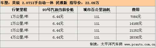 昊銳配備的2.0TSI發(fā)動(dòng)機(jī)在轉(zhuǎn)速達(dá)到5100rpm時(shí)可以輸出147kw的最大功率,在1700rpm時(shí)可以產(chǎn)生280Nm的最大扭矩,動(dòng)力性能更加強(qiáng)勁,無(wú)論在起步、加速、爬坡或是其他任何工況下,都可以讓駕駛者盡情地享受駕駛樂趣。根據(jù)網(wǎng)友實(shí)際油耗調(diào)查系統(tǒng)表示,昊銳2.0TSI百公里實(shí)際油耗為11L,行駛1萬(wàn)公里需要花費(fèi)7084元。