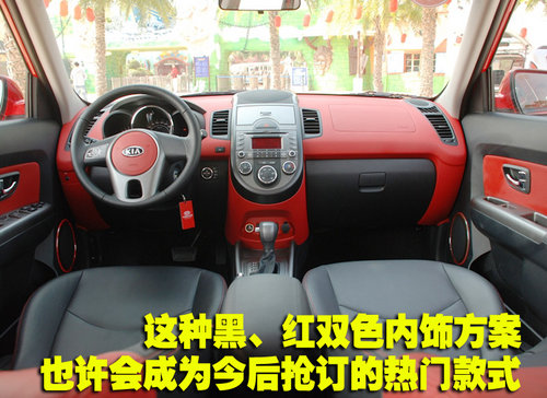 在方向盤也就是駕駛者的周圍分布著很多按鈕,不過別擔(dān)心,再生疏的駕駛者也不會因?yàn)檫@些按鈕或是功能而手忙腳亂,因?yàn)樵O(shè)計(jì)師早已經(jīng)為您的日常使用考慮的很周到了。位于儀表臺左側(cè)的三炮筒式儀表盤設(shè)計(jì)還算時(shí)尚,但是儀表盤的功能并沒有太多新鮮元素的注入,這一點(diǎn)也是因?yàn)槌杀镜目紤]而不得不落入俗套。中控臺左側(cè)下方是控制大燈高度的調(diào)節(jié)按鈕,右側(cè)的控制鈕是SOUL的最大特點(diǎn),即控制前車門揚(yáng)聲器發(fā)光的開關(guān),它可以跟隨音樂節(jié)奏變換紅色燈光的閃爍,如同將迪廳的燈光帶入了車內(nèi)。