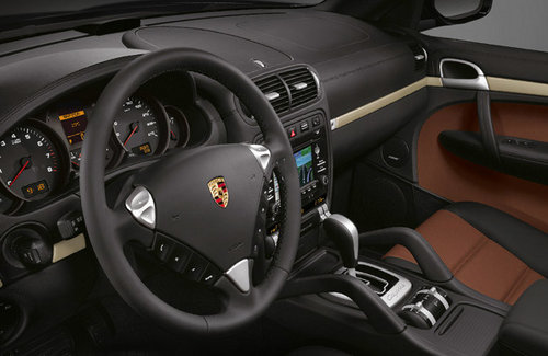在內飾方面,豪華版限量款車型采用雙色內飾,以黑色光面真皮為主,在座椅中部和門板底部均鑲嵌桃木棕色真皮。前排座位可12向調節(jié),頭枕上壓印有保時捷盾徽。同時配有加熱式前后排座椅、舒適照明組件以及后側車窗遮陽簾。