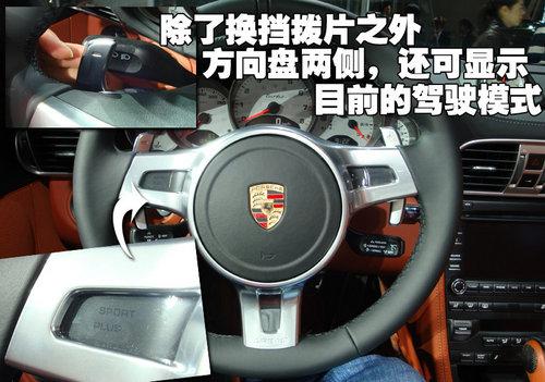 配備PDK雙離合變速器的2010款保時(shí)捷911 Turbo敞篷版,可以通過選裝帶有換檔翹板開關(guān)的新款選裝三輻方向盤取代帶有傳統(tǒng)換檔按鈕的標(biāo)準(zhǔn)方向盤。換檔翹板開關(guān)牢固安裝在方向盤上,右側(cè)的翹板開關(guān)用來升檔,左側(cè)的翹板開關(guān)用來降檔。