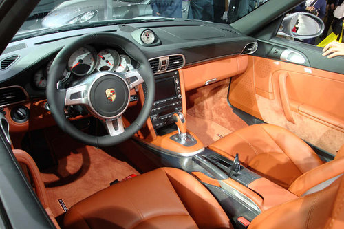 亞洲首發(fā)的保時(shí)捷911 Turbo Cabriolet成為展臺上最耀眼的明星。這款車型繼承了傳奇跑車系列所具備的非凡性能和精巧設(shè)計(jì)。這款第七代911 Turbo的核心亮點(diǎn)是其排量為3.8升、最大輸出功率達(dá)500 bhp的全新動(dòng)力單元。在保時(shí)捷911 Turbo 35年的輝煌歷史當(dāng)中,這也是第一款全新搭載了直接燃油噴射以及帶有可變幾何渦輪保時(shí)捷專用渦輪增壓器的發(fā)動(dòng)機(jī)。另外,全新六缸雙渦輪增壓水平對置發(fā)動(dòng)機(jī)也是第一次與七速保時(shí)捷雙離合器變速箱(PDK)配合使用。
