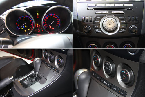 全車標配了真皮座椅用料似乎比舊款有所提升,手感和工藝都數(shù)上乘水平。前排座椅的坐墊相比舊款分別加寬了20mm和加高了35mm,提高了舒適度之余,也增加了包裹性和高速入彎時的承托力,有效減少了身體的側滑。馬自達的multi-information display(MID)系統(tǒng),包括一塊液晶屏、智能鑰匙、無鑰匙啟動系統(tǒng),而中控臺則標配了6碟CD,F(xiàn)M/AM和雙區(qū)域恒溫空調控制鍵。
