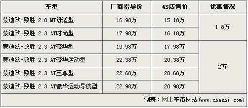 據(jù)4S店銷售人員介紹:在售的蒙迪歐-致勝共有6款車型,近期購(gòu)買(mǎi)的消費(fèi)者最高可以得到2萬(wàn)元的優(yōu)惠。入門(mén)級(jí)的2.0L手動(dòng)舒適版以及2.3L自動(dòng)時(shí)尚版經(jīng)1.8萬(wàn)元的優(yōu)惠后,售價(jià)分別降為了15.18萬(wàn)元和16.18萬(wàn)元。2.3L豪華運(yùn)動(dòng)版、至尊版以及豪華運(yùn)動(dòng)導(dǎo)航版經(jīng)全系最高的2萬(wàn)元優(yōu)惠后,售價(jià)分別降為了20.38萬(wàn)、20.68萬(wàn)以及20.98萬(wàn)元。