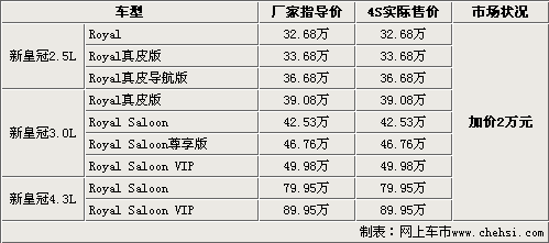 一汽豐田新皇冠 提現(xiàn)車加價2萬元