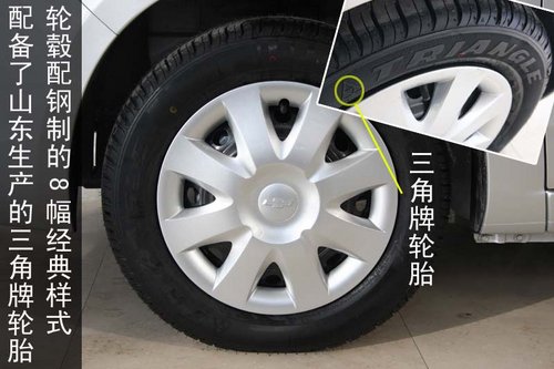 這款車配備了山東生產(chǎn)的三角牌輪胎,也許是受成本的控制,并沒有采用我們熟悉的合資品牌輪胎。不過使用中應(yīng)該不會出現(xiàn)什么問題,只不過是性能上沒有那么出色。輪轂?zāi)壳爸豢吹竭@個鋼制的8幅樣式,樣子不難看但也沒什么亮點,相信高配車型應(yīng)該配備鋁合金輪轂。