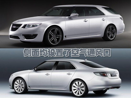 從圖片來看,薩博旅行版車型保持了與轎車車型一樣的前臉造型,在前輪拱罩的后面均設(shè)置了空氣通風(fēng)口。不過有所不同的是薩博9-5旅行版車型采用了五輪輻設(shè)計(jì)的輪轂,轎車上傾斜的車尾造型已經(jīng)被典型的旅行版車型車尾造型所取代。