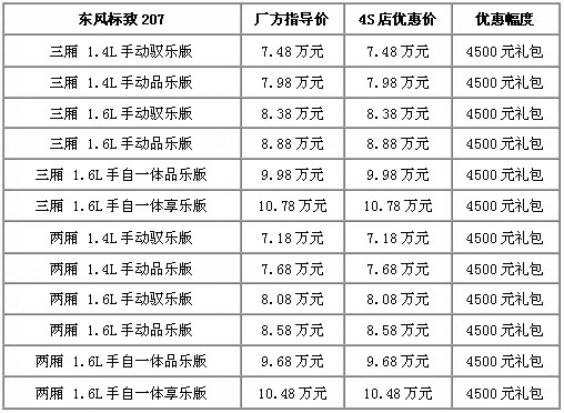 近日,車天下編輯從云南都市車迷寶獅標致專營店獲悉,目前購標致207全系車型,不但可以享受全現(xiàn)車供應,更能享受到4500元隨車大禮包贈送。這在今年的年末顯得難能可貴,具體車型及詳細優(yōu)惠政策,如下表: