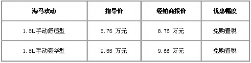 隨著年末的臨近,明年的購置稅新政成為城中話題。近日新政策公布,明年優(yōu)惠收縮至75折,讓不少觀望的朋友緊張起來。車天下編輯從昆明合達(dá)獲悉,為滿足消費(fèi)者年底購車的迫切希望,現(xiàn)推出海馬歡動1.8L全系車型免購置稅活動。具體車型及詳細(xì)優(yōu)惠政策,如下表: