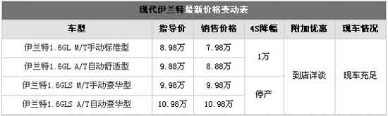 編者在廣州地區(qū)的經(jīng)銷商處了解到,目前伊蘭特的豪華型全部停產(chǎn),其他版本有現(xiàn)車但是不多,如果喜歡這款車的朋友不妨及早確定購買意向以便能繼續(xù)享受購置稅減半的優(yōu)惠政策,現(xiàn)在購買伊蘭特優(yōu)惠現(xiàn)金1萬元。